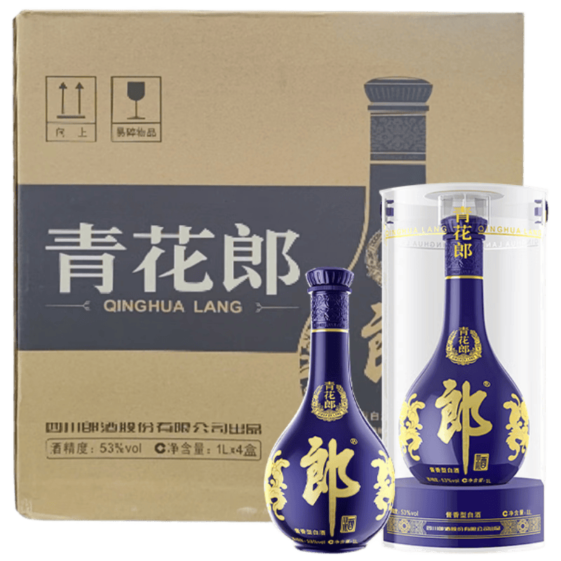 最后,我们来看看郎酒青花郎的另一款高端礼赠装。这款1000ml*4瓶装的设计,很适合在节庆时作为礼物赠送。53度的酒精度让这款酒的香气更加浓烈,适合在正式场合中享用。